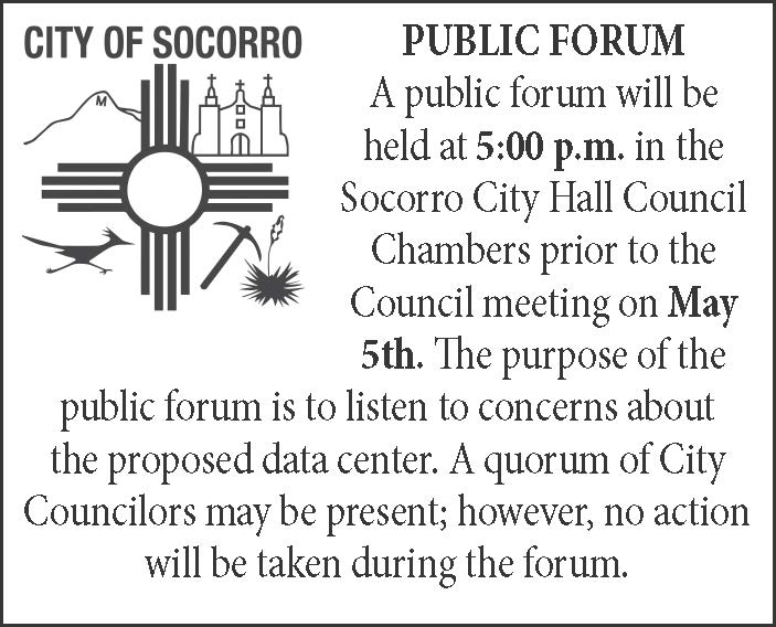Socorro Announcements PUBLIC FORUM The purpose of the public forum is to listen to concerns about the proposed data center.